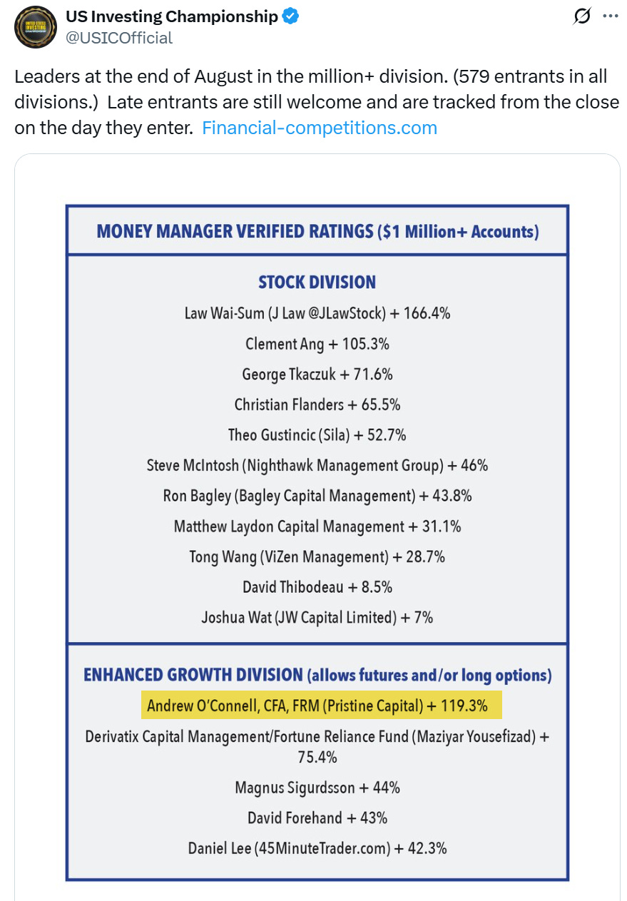 I just found out I’m in 1st place in my division of the US Investing Championship! I appreciate your support of our community. It’s pretty awesome to be in the trenches with you👇