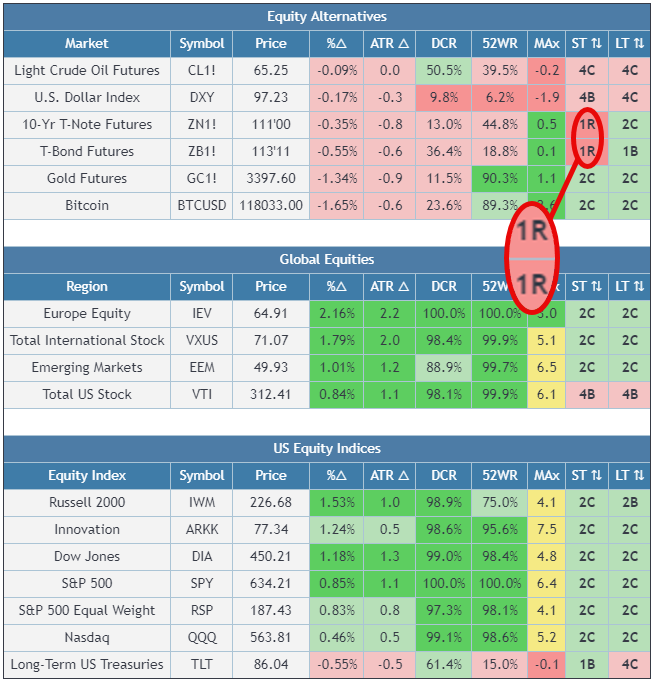 US Bonds are weakening, while equities are blasting off! All the symbols in Global Equities moved >1 ATR today. Climactic?👇