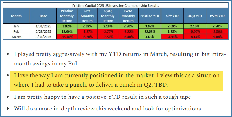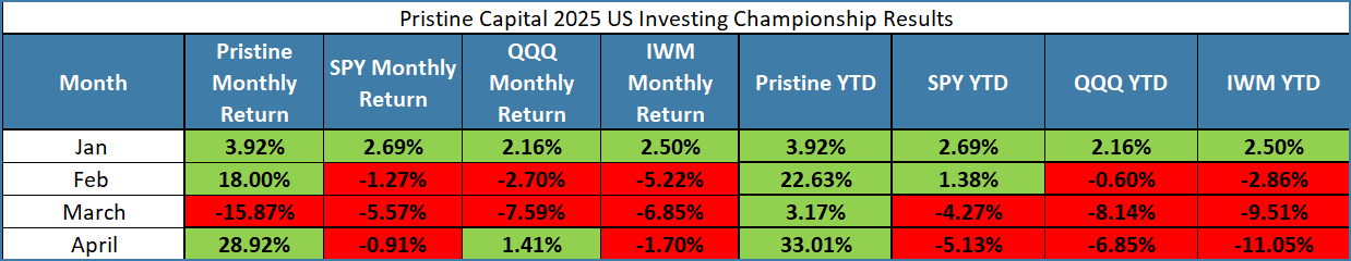 Trading results: +28.02% April return; +33.01% YTD. I’ll be reporting these results for the US Investing Championship! 👇