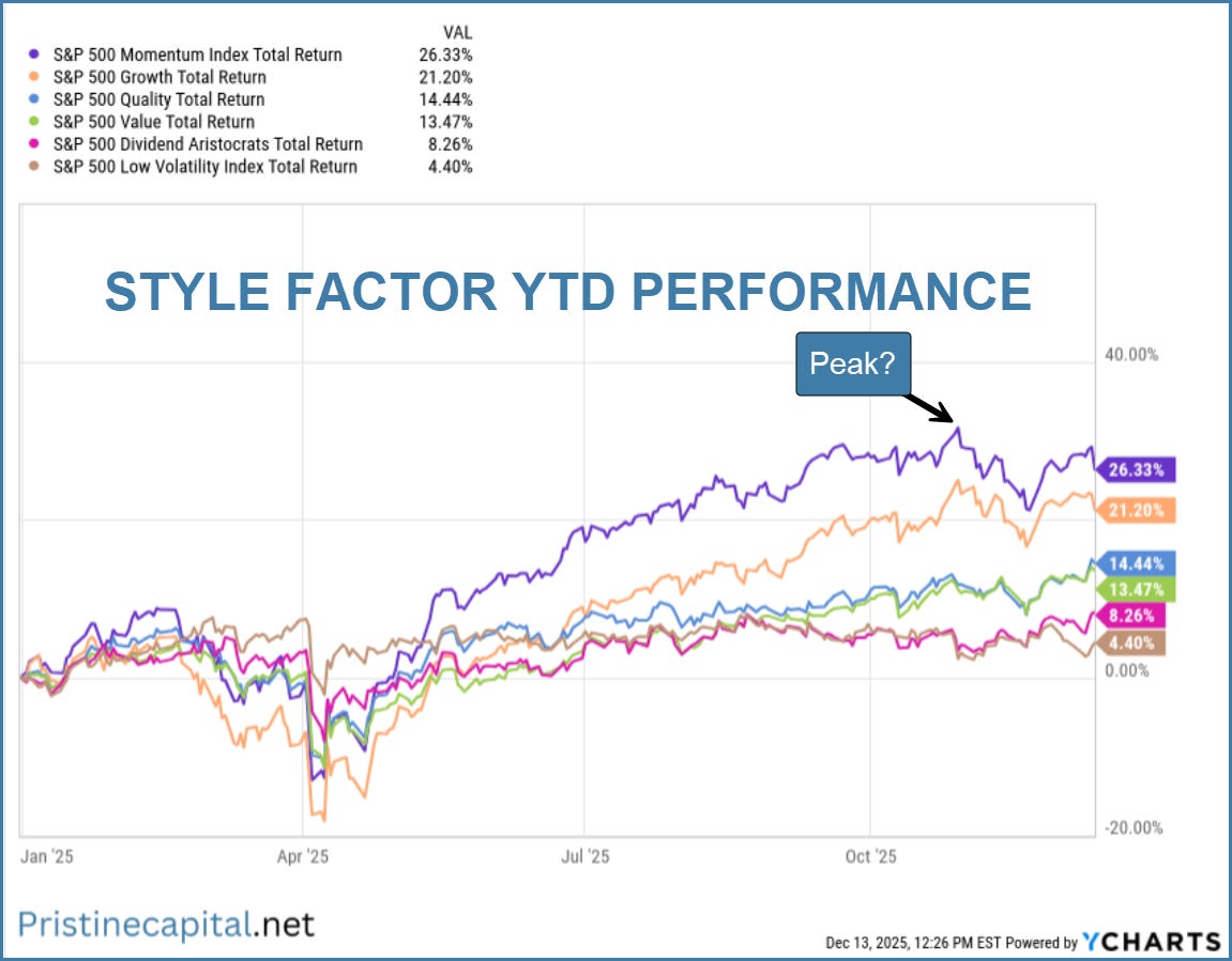 The momentum style factor is the leading group YTD, but it’s important to note that it peaked back in October. This could be a tell for the year 2026. My baseline assumption is that 2026 will be a weaker year than 2023, 2024, & 2025👇