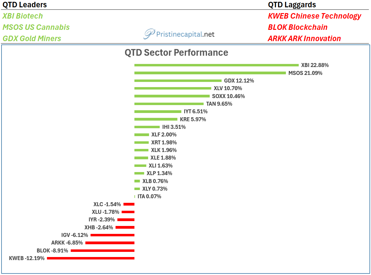 XBI Biotech leading in Q4. Could be related to expectations of an easier fed, and/or the rotation into small cap stocks more broadly as investors look for alternatives to megacap AI stocks 👇