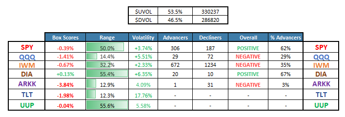 Negative price action across all of our tracked indices paired with rising volatility. The best days for risk assets this year have occurred against a backdrop of TLT 0.00%↑ long-term treasury ETF rallying, and volatility declining. We experienced the exact opposite today!