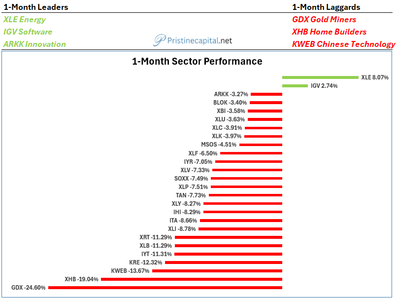 GDX Gold Miners, which is arguably the most high momentum group since the 2023 bull market started, was hit the hardest with selling over the last month. Evidence that investors really are taking down portfolio exposure 👇