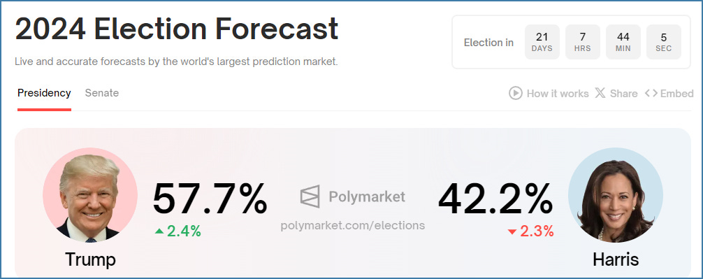 Trump is favored to beat Harris in the 2024 presidential election on 11/5 👇