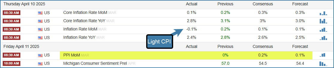 CPI came out light this morning! PPI on deck for tomorrow 👇