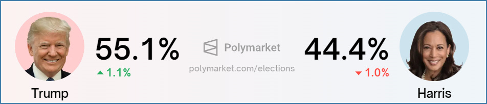 Trump is favored to beat Harris in the 2024 presidential election on 11/5 👇