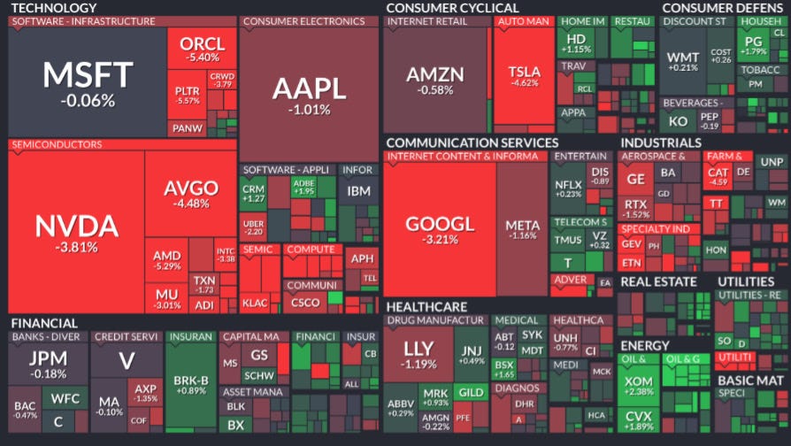 The trend model flipped from -1 to -3 🔴 as the ES S&P 500 fell below its 20D SMA. Megacap tech stocks underperformed 👇