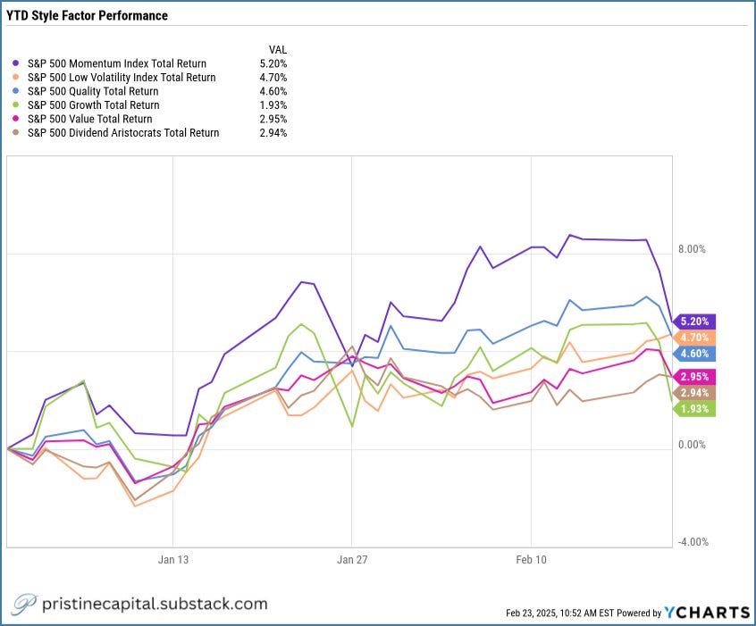 The Low Volatility style factor made a big relative improvement last week. Worth noting if a key to your trading strategy is trading higher volatility stocks 👇