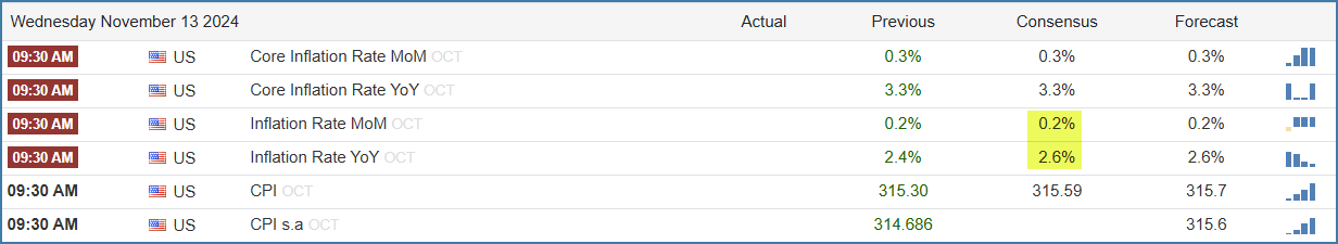 CPI incoming tomorrow. The market is projecting the YoY figure to INCREASE from 2.4% to 2.6% 👇