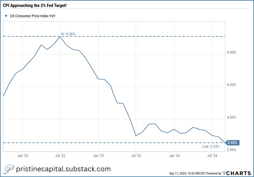 While CPI is not quite at the fed target of 2%, it is now pretty darn close at 2.5%.