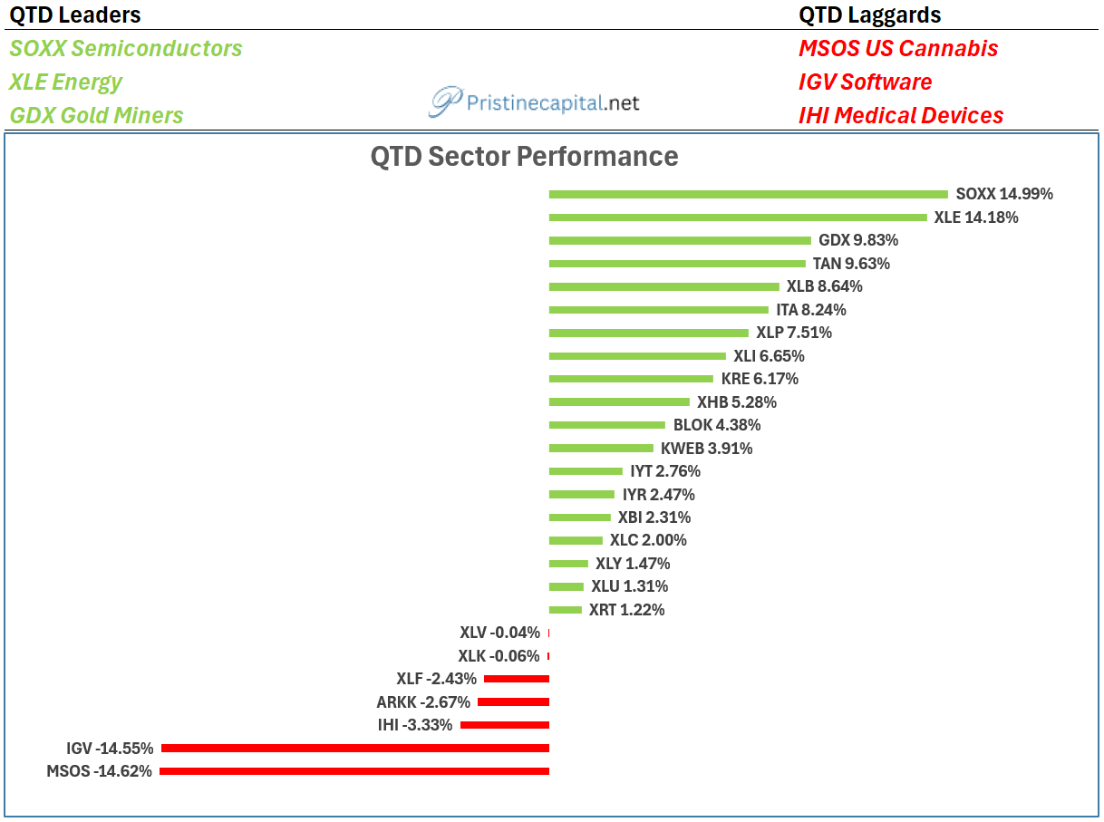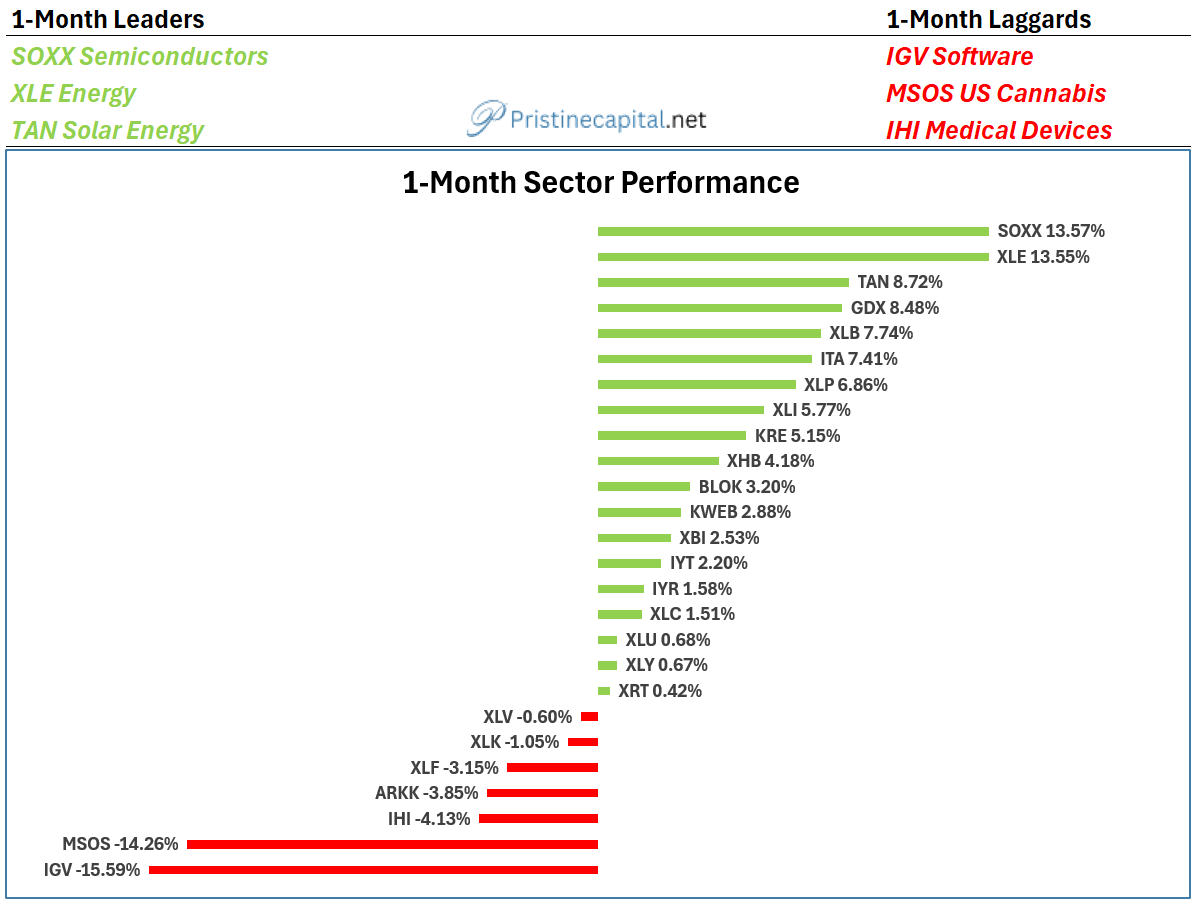 SOXX semis leading the pack & MSOS cannabis lagging 👇
