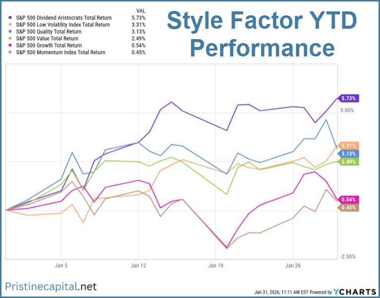 Dividend Aristocrats and Low Volatility are leading in 2026. If you primarily trade growth stocks, most likely your start to the year is slower than the prior few years. Nothing wrong with that👇