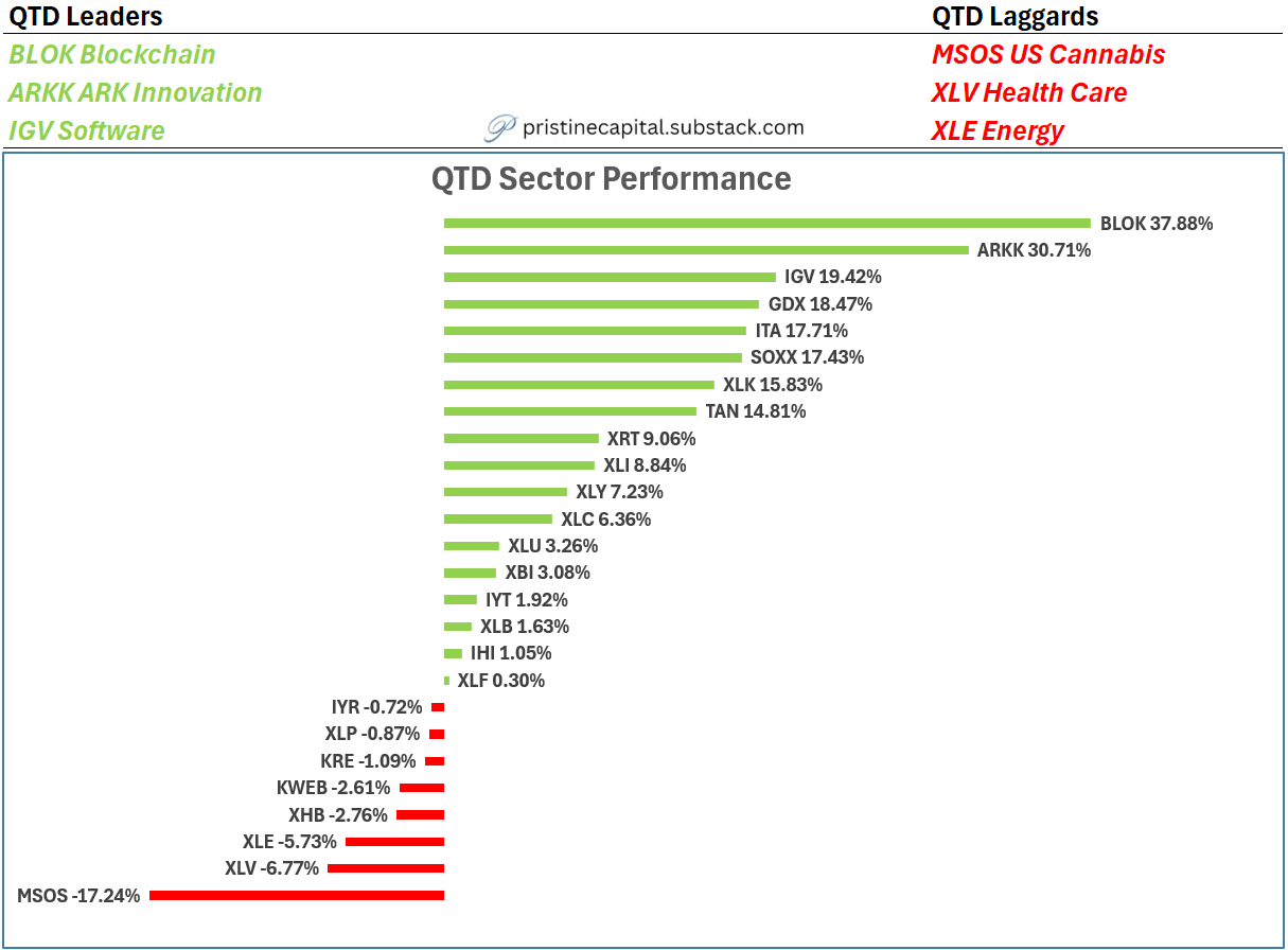 Risk-on BLOK blockchain & ARKK leading in Q3 👇
