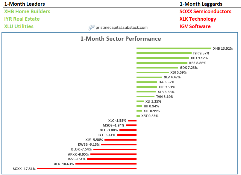 Lower interest rates are a positive catalyst for XHB homebuilders, KRE regional banks, and IYR real estate. The strength in these groups confirms that market participants are pricing in a new regime of lower interest rates👇