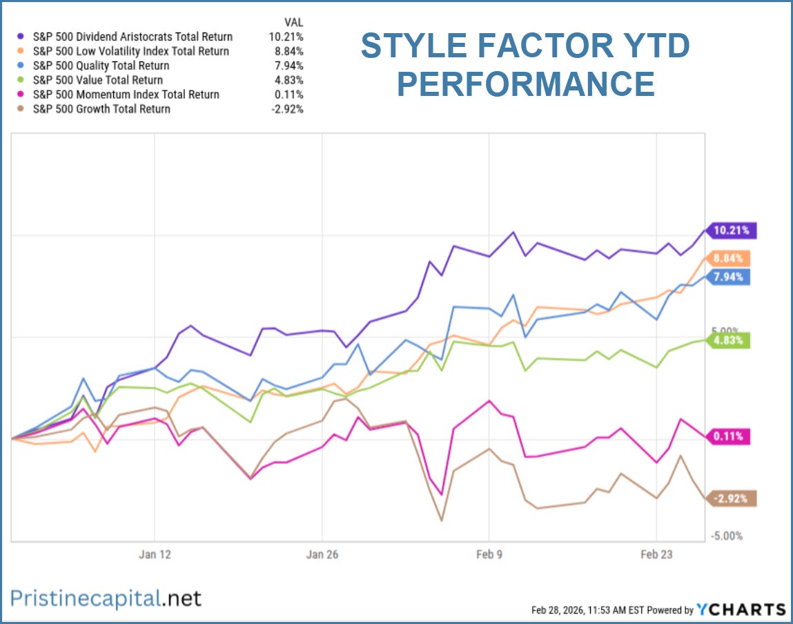 Dividend Aristocrats and Low Volatility are leading in 2026 as investors rotate out of growth 👇