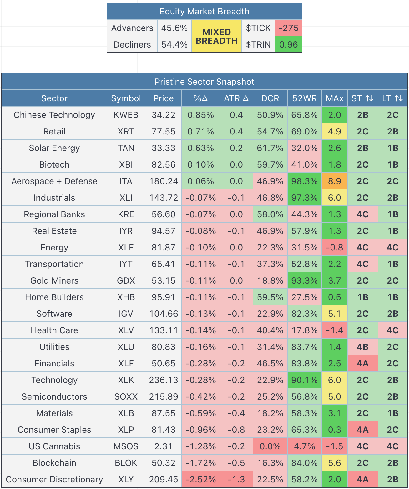 Breadth is Mixed, indicating a slight tilt toward weakness but not an overwhelming trend in either direction. Not much showing leadership today. Most sectors are either flat or under pressure, reflecting an uncertain and selective market environment 👇