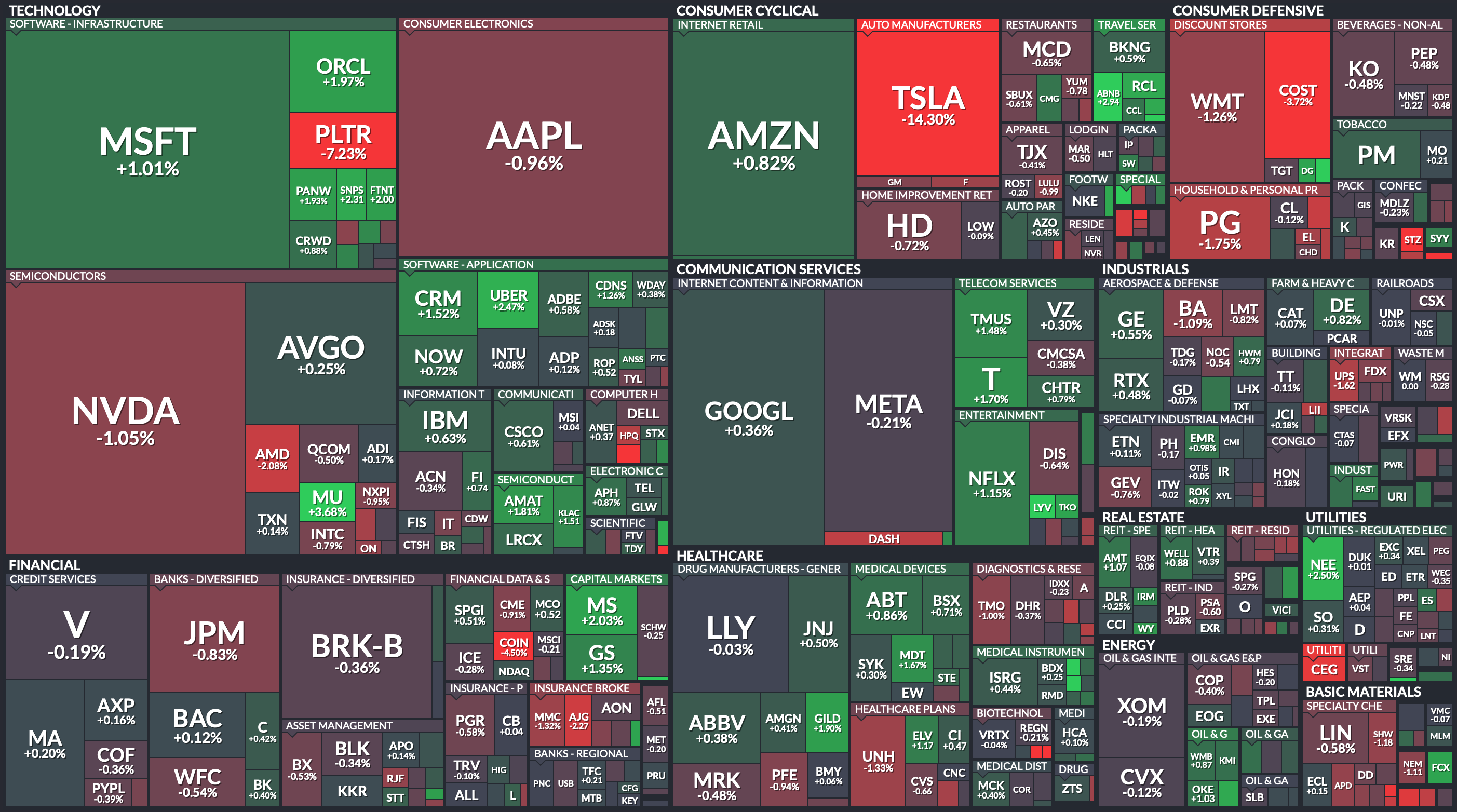 Despite broader market indecision, technology stocks—especially those tied to AI and semiconductors—are showing resilience, helping to offset weakness in more cyclical and defensive sectors.
