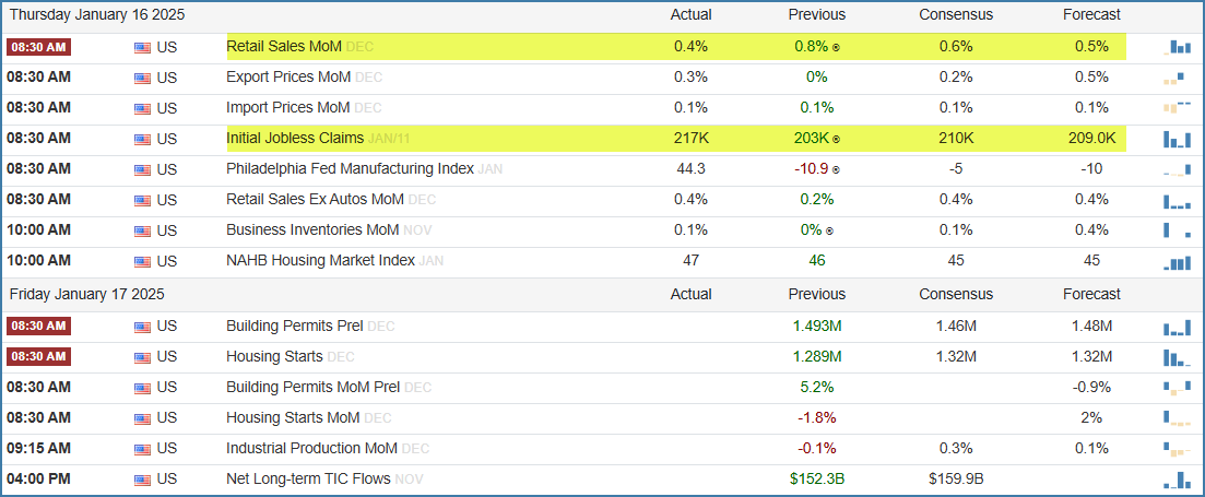 Retail sales came in light & initial jobless claims slightly higher than expected 👇