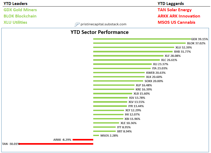 GDX gold miners and BLOK blockchain continue to lead our YTD scoreboard👇