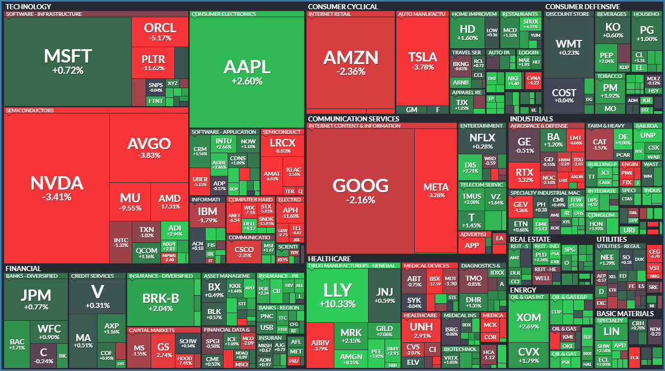AMD -17.31%; PLTR -11.62%; ORCL -5.17%👇