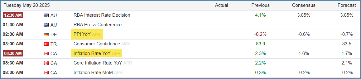 German & Canadian inflation data incoming 5/20👇