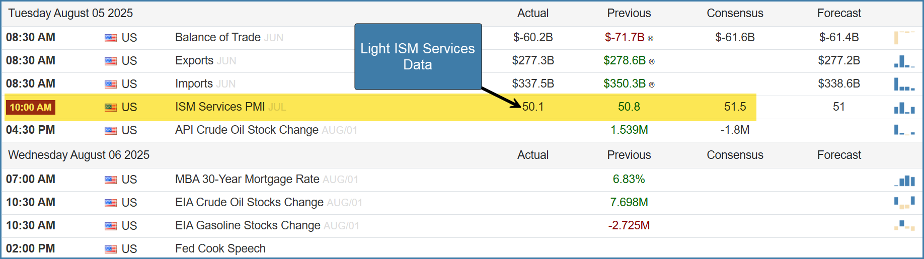 Economic Calendar - Weak ISM Services!🌎