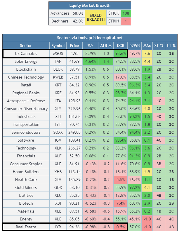 MSOS led the way & the rate-sensitive IYR real estate ETF lagged 👇