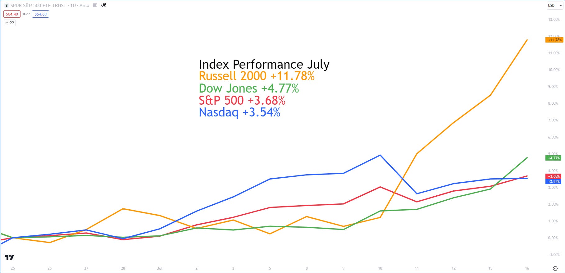 Shaping up to be a come-from-behind victory for the Russell 2000 this month 👇