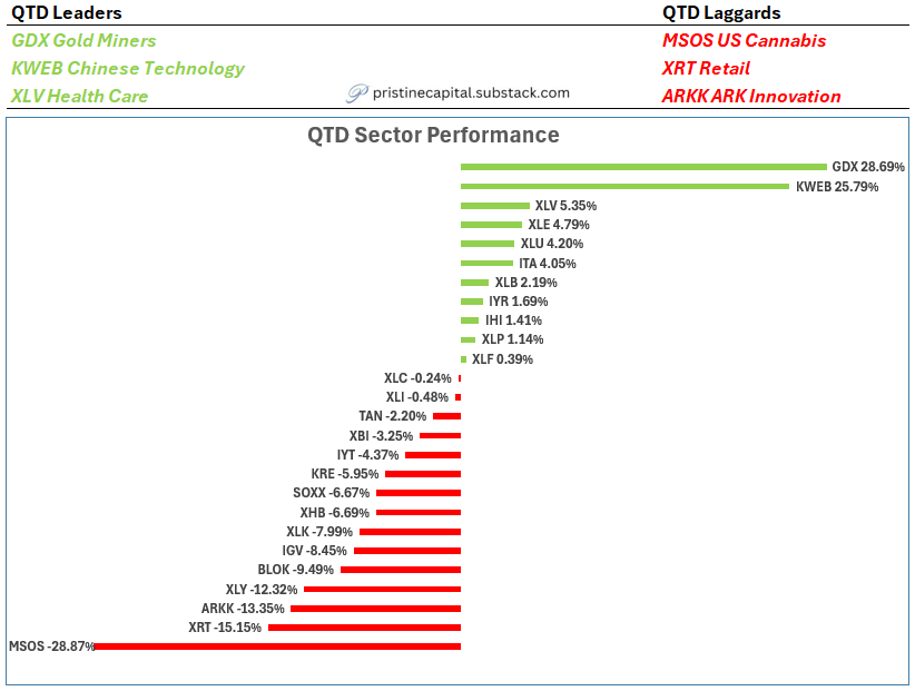 Aside from KWEB China, the leading groups like GDX gold miners, and XLV healthcare are defensive! Speaks to the overall risk-off tone we’ve seen in 2025 👇