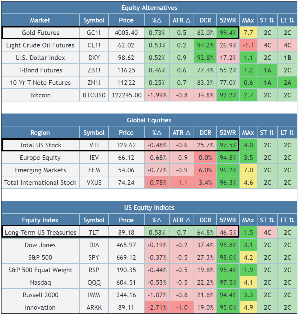 Gold 52wk high; TLT bonds outperformed SPY stocks👇
