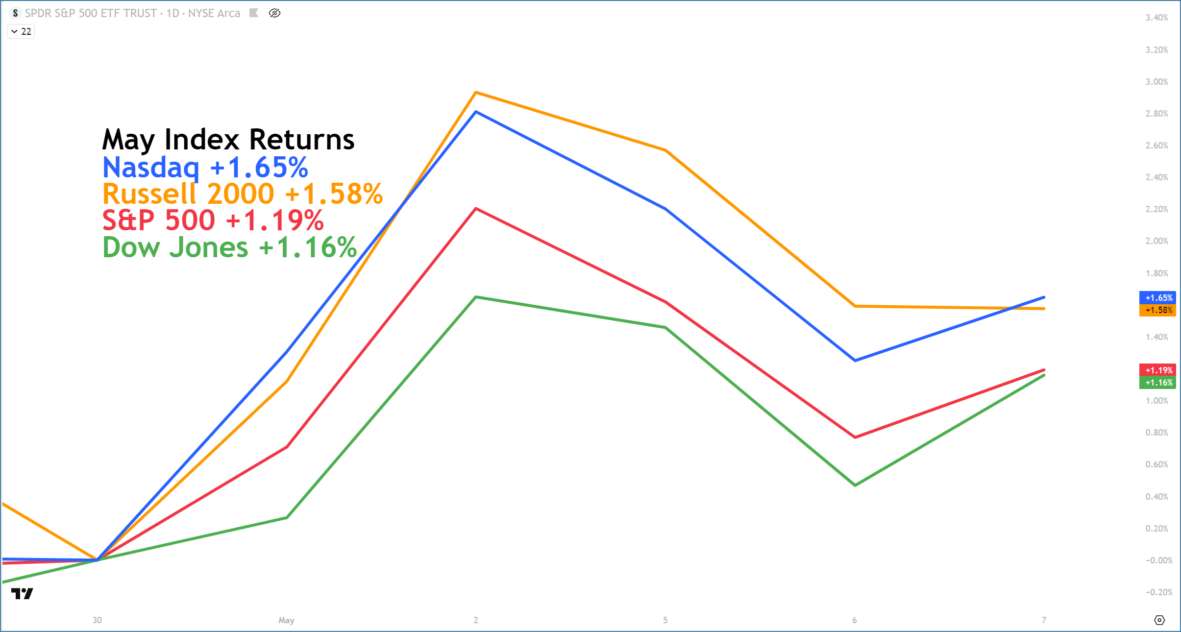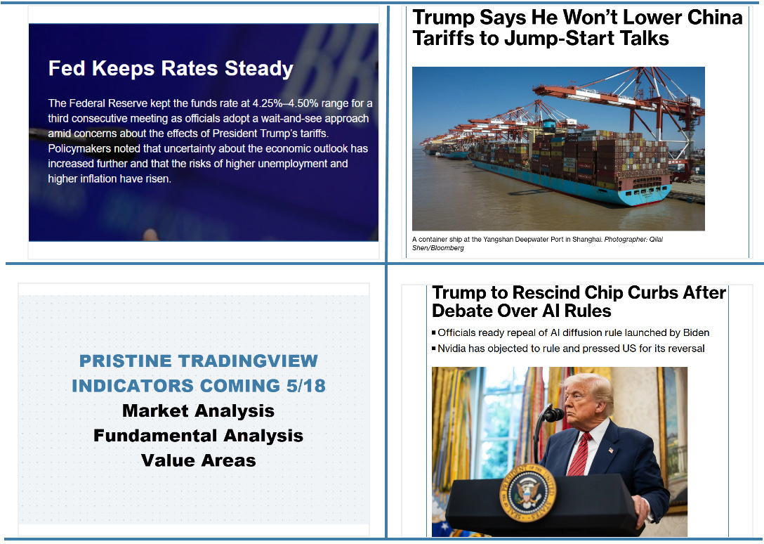 We found out last night that the US & China would negotiate trade on 5/8. Fed Wednesday came and went today. We also got news that Trump would ease semiconductors exports imposed during the Biden administration.