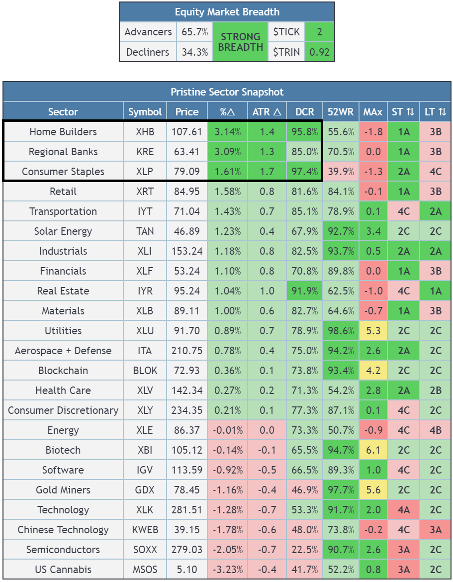 XHB Homebuilders, KRE Regional Banks, XLP Consumer Staples strength in a tape of STRONG BREADTH🟢