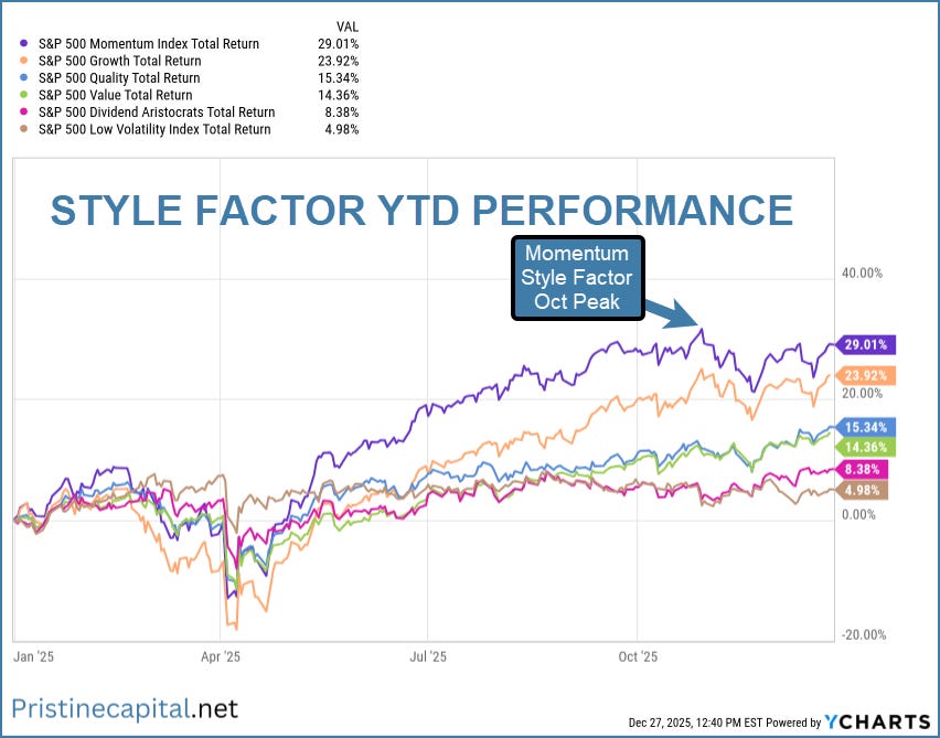 The momentum style factor peaked in October, but the Value and Quality style factors are trading up to NEW highs👇