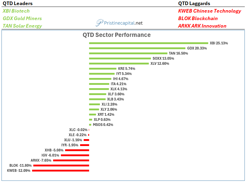 XBI Biotech leading in Q4. Could be related to expectations of an easier fed, and/or the rotation into small cap stocks more broadly as investors look for alternatives to megacap AI stocks 👇