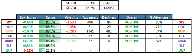 Strong breadth into CPI, with ARKK leading. Equity investors bet on a light CPI into the event.