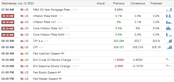The highly anticipated CPI is to be released tomorrow morning at 8:30 AM ET. Consensus is expecting a +.3% MoM reading, bringing the YoY inflation rate down to 3.1%.