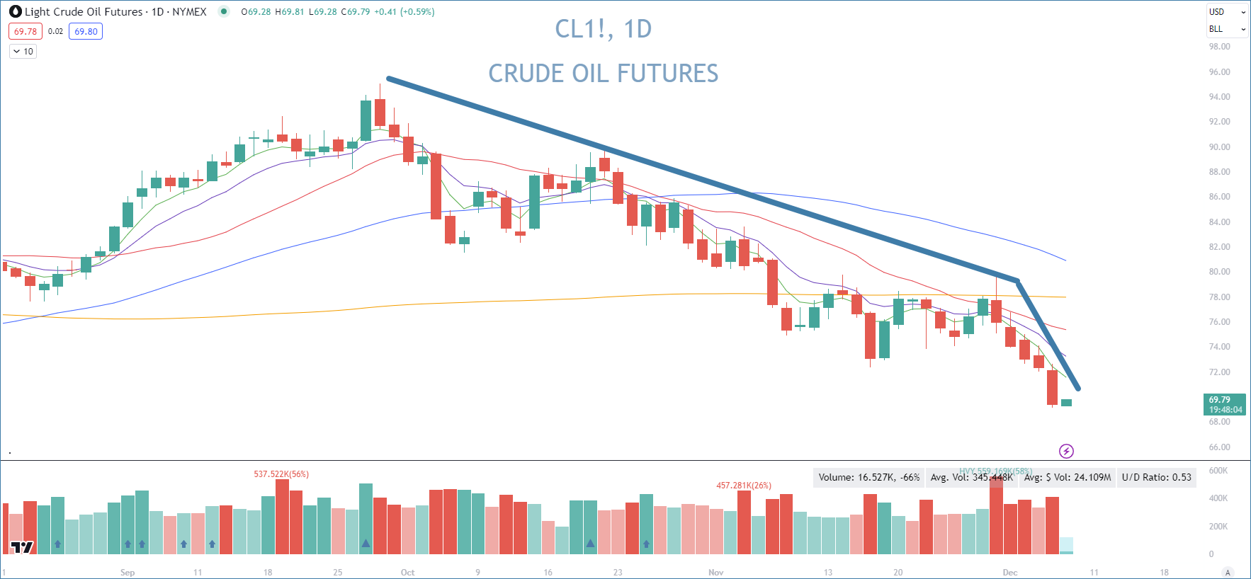 Crude oil is now trading below $70/barrel! This is another trend that has accelerated over the last few days.