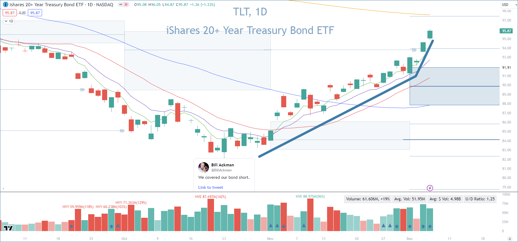 The TLT long-term treasury ETF was steadily trending higher, until the last two sessions, where the trend has turned parabolic👇
