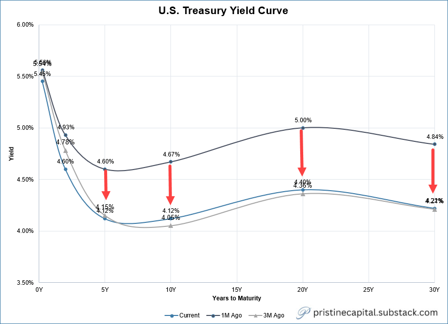 The slowing economic data combined with the lighter inflation data has put significant downward pressure on bond yields. They’ve retraced back to levels from three months ago.