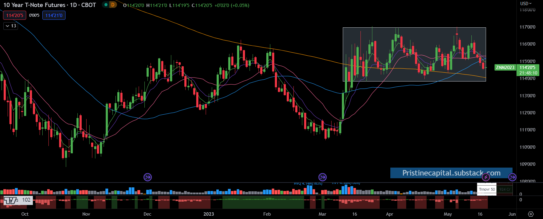 ZN_F 10yr treasury futures finished in negative territory again! Bonds and stocks are living in two different worlds for the time being.
