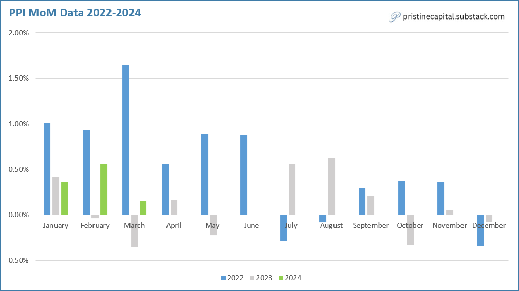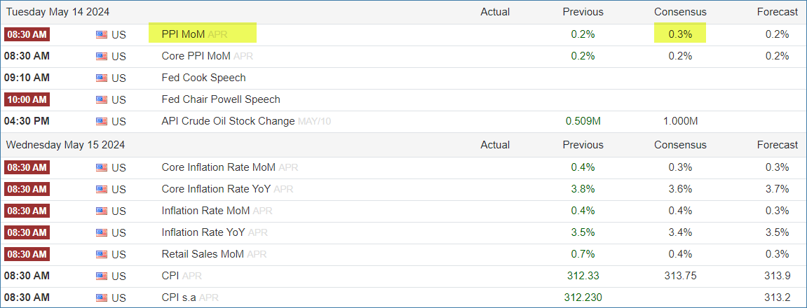 PPI is coming tomorrow morning at 8:30 AM ET! The consensus estimate is +.3% MoM which seems a big high to me👇