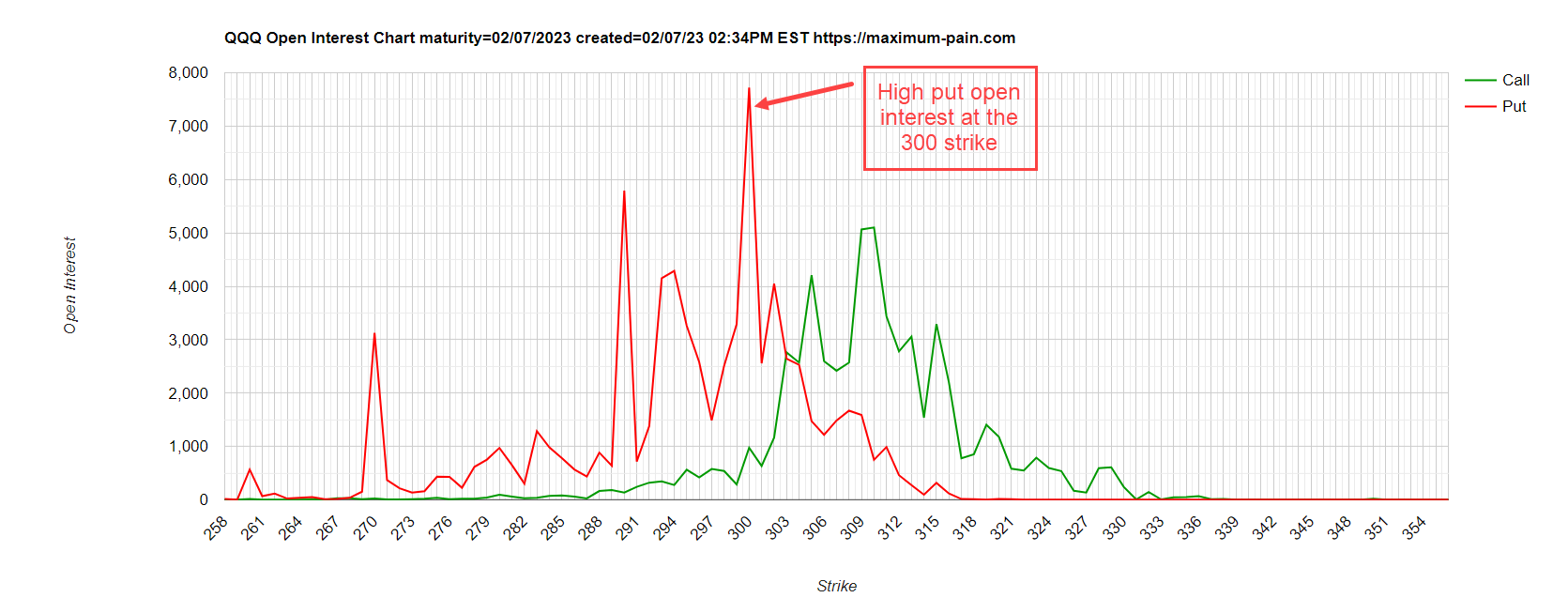 Powell didn’t give the market any new information today, so I believe that most of today’s move has to do with investor positioning. I checked the QQQ options open interest for today’s expiry and found a wall of QQQ puts at the 300 strike: