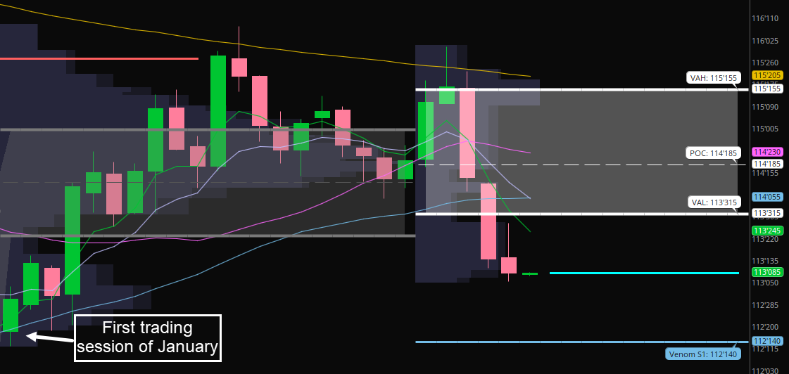 The 10yr treasury futures contract sold off for a third straight day, continuing the move that began after the stronger-than-expected jobs report on Friday. It’s now trading below the monthly value area, and is on the verge of giving back all YTD gains.