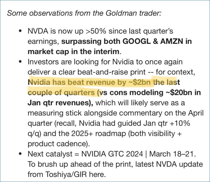 Any investor considering buying into NVDA from these levels should not be thinking about tonight’s earnings report…they should be considering whether NVDA will beat on revenue by ANOTHER $2BB next quarter. Let’s see what the river brings 🌊