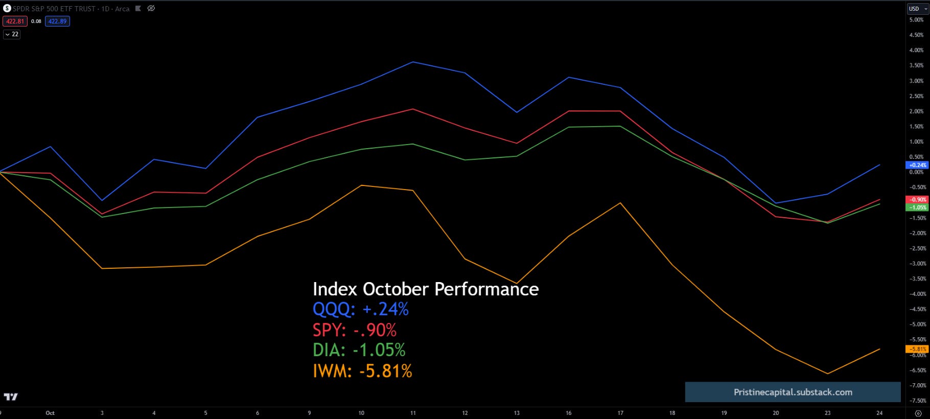 1 out of 4 tracked indices are in positive territory MTD. The IWM small cap underperformance is extreme. Barring the end of the world, we are expecting a bounce in small caps.