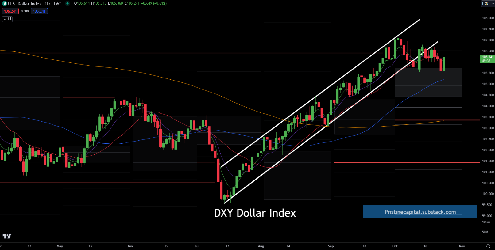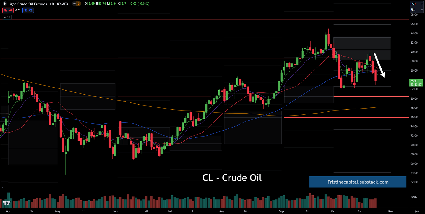 Crude oil followed through to the downside, and is now trading at $83.71/barrel. Considering the geopolitical flareups taking place around the world, the best possible outcome for risk assets is unfolding!
