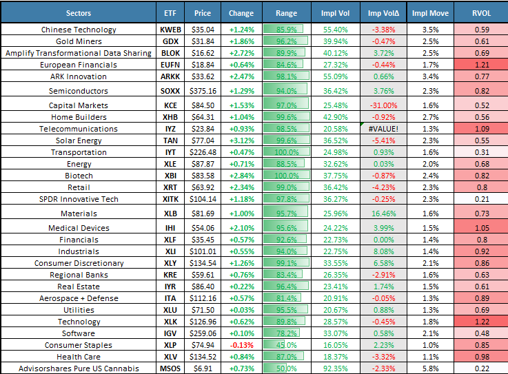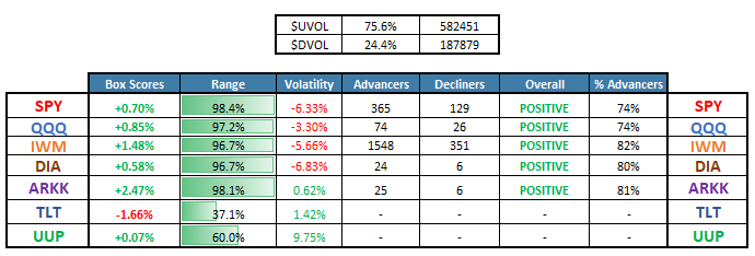ARKK and IWM led today’s gains, signaling risk-on sentiment