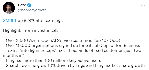 MSFT posted the following earnings after the bell and proceeded to sprint to the upside!