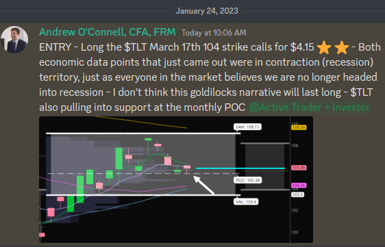 I added a position in the TLT long-term treasury ETF after seeing the PMI data hit the wire, knowing it would catch goldilocks players off-guard and force them to add duration: