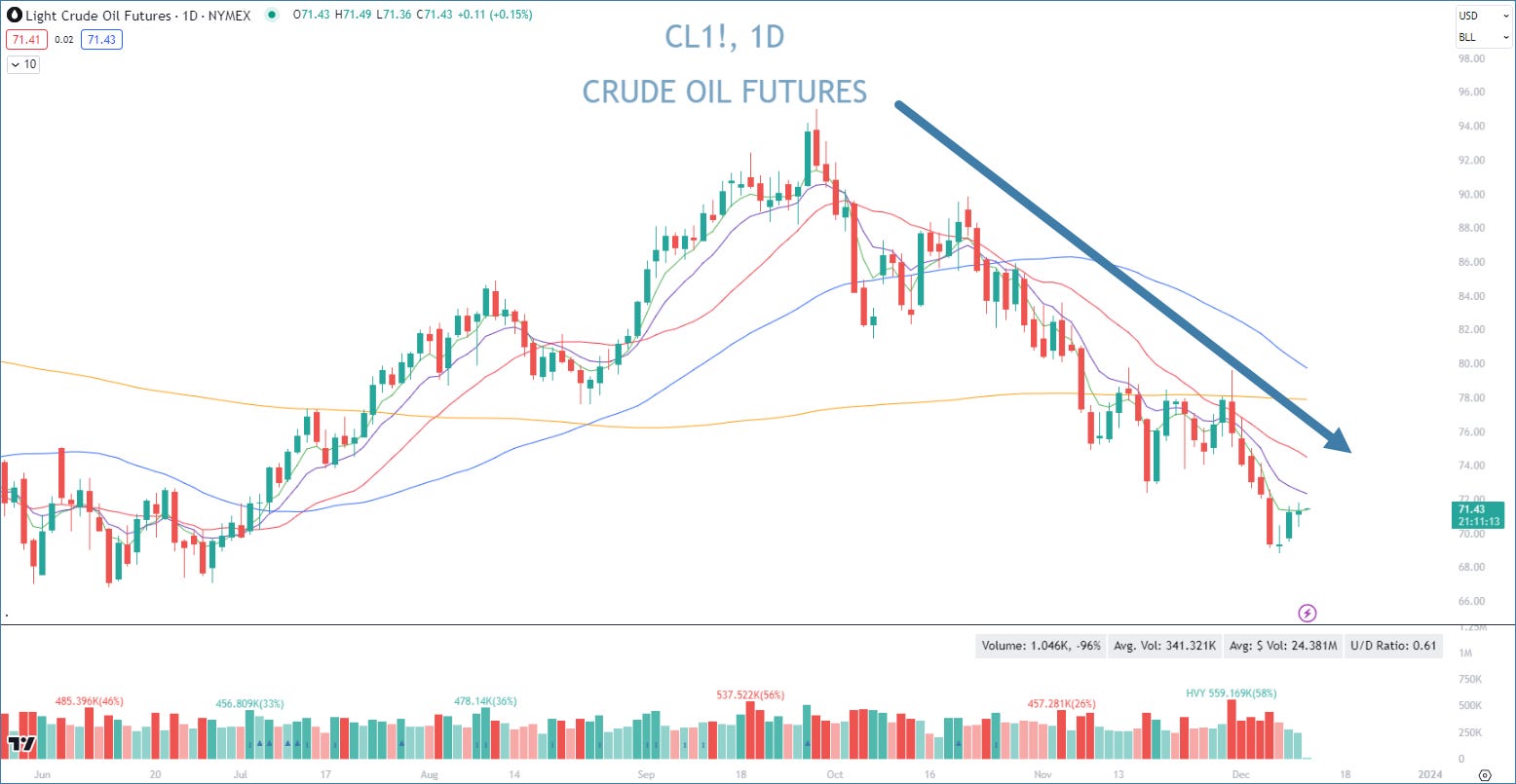 Crude oil continues to stair-step lower. Let’s see what impact this has on tomorrow’s report!
